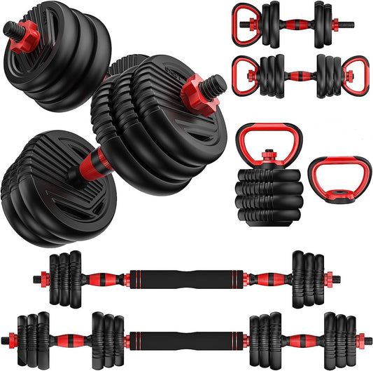 Adjustable Dumbbells, 10/25/35/55/70/90lbs Free Weight Set with Connector, 4 in1 Dumbbells Set Used as Barbell, Kettlebells, Push up Stand, Fitness Exercises for Home Gym Suitable Men/Women